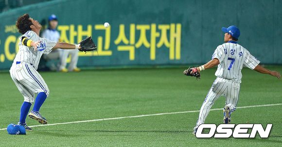 9회초 LG 공격 2사 2, 3루 상황 6번타자 이병규의 3루수와 좌익수 사이에 떨어지는 2타점 2루타 때, 삼성 3루수 박석민이 전력을 다해 쫓아갔지만 아쉽게 타구를 놓치고 있다.