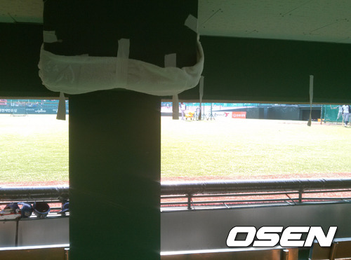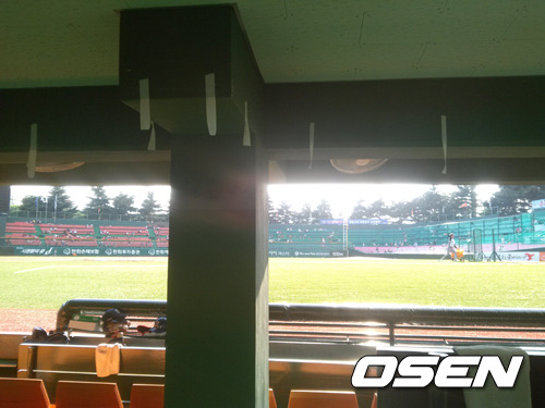 지난 13일 청주구장. 한화와 원정경기를 앞둔 NC 덕아웃에서는 아찔한 장면이 몇 차례 연출됐다. 높이가 매우 낮은 덕아웃 천장 및 기둥 모서리에 머리가 찧을 뻔한 사람이 한둘이 아니었다. 보다 못한 NC 김경문 감독은 구단 직원을 통해 수건을 천장 모서리에 반창고로 붙였다. 흰색 반창고가 곳곳에 붙여져 있었다. 모든 이들의 눈에 잘 띄어 주의를 알려주기 위함이었다.