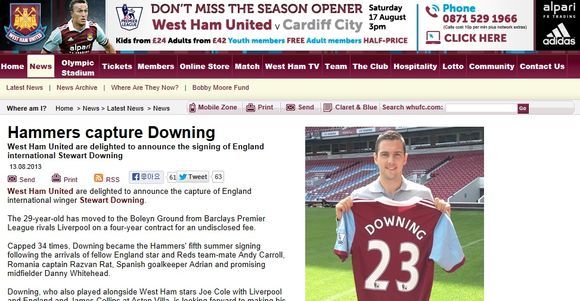 리버풀의 측면 공격수 스튜어트 다우닝(29)이 리버풀을 떠나 웨스트 햄 유나이티드의 품에 안겼다.