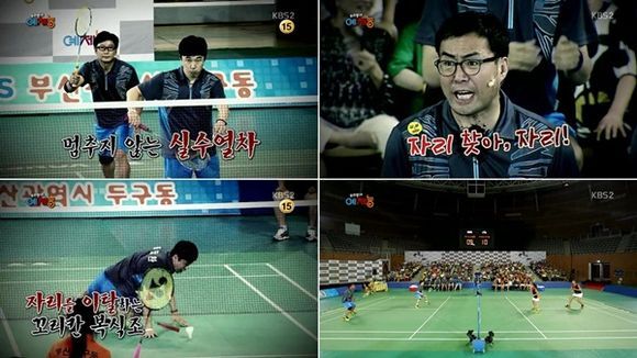 경기가 시작되자 두 사람은 헛스윙을 하고 자리를 못 찾는 등 우왕좌왕 하며 긴장한 모습이었다. "자리 찾아. 자리"라고 소리치는 이만기의 지적에도 이들은 실수를 연발했고, 이들의 모습에 '멈추지 않는 실수열차'라는 자막과 함께 '꼬리칸 복식조'라는 별칭이 생기기도 했다.