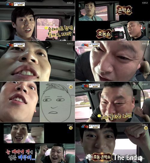 지난 13일 오후 방송된 KBS 2TV '우리동네 예체능'에서는 부산 두구동과 세 번째 배드민턴 경기를 앞두고 부산으로 향하는 강호동과 존박의 모습이 그려졌다. 두 사람은 각자의 캠코더를 들고 서로에게 인터뷰를 자처하며, 여러 질문을 쏟아부었고 그 과정에서 굴욕적인 각도로 서로의 망가진 모습을 화면에 담아냈다.