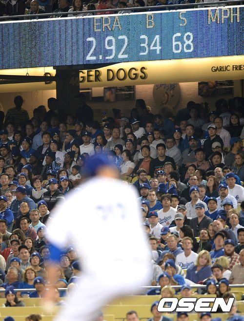 류현진이 7회초 2.92까지 방어율을 낮추며 역투를 하고 있다. /sunday@osen.co.kr