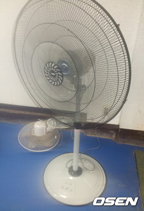 하지만 원정 라커룸에는 에어컨 1대가 전부다. 무더위에 지친 선수들을 위한 백 단장의 정성 가득한 선물. 이 관계자는 "대구 경기 뿐만 아니라 군산, 광주 등 시설이 열악한 구장에서 원정 경기가 예정돼 있어 선풍기를 들고 다닐 예정"이라고 했다.