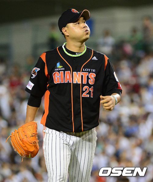 14일 오후 서울 잠실야구장에서 열린 '2013 한국야쿠르트 세븐 프로야구' 두산 베어스와 롯데 자이언츠의 경기, 5회말 수비를 마친 롯데 송승준이 더그아웃으로 향하고 있다. 송승준은 5이닝 1실점 호투중.