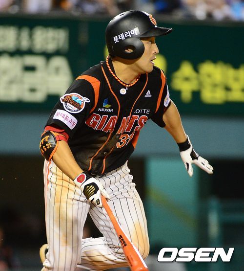 14일 오후 서울 잠실야구장에서 열린 '2013 한국야쿠르트 세븐 프로야구' 두산 베어스와 롯데 자이언츠의 경기, 7회초 무사 1루에서 롯데 손아섭이 1타점 적시 2루타를 날리고 타구를 바라보고 있다.