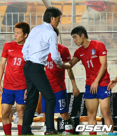 한국은 김동섭을 최전방에 내세운 가운데 2선에서 윤일록과 이근호, 조차호가 지원하게 했고, 중원에서는 하대성과 이명주가 호흡을 맞췄다. 수비진은 김민우와 황석호, 홍정호, 이용으로 구성됐고, 김승규는 골키퍼로 출전해 A매치서 데뷔했다. / baik@osen.co.kr