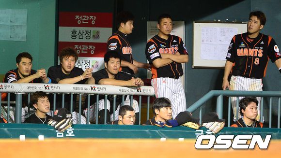 9회초 2사에서 롯데 선수들이 더그아웃에서 심각한 표정으로 경기를 지켜보고 있다./jpnews@osen.co.kr