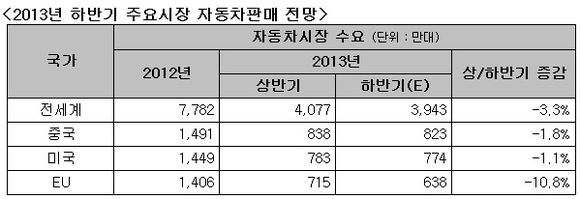 전세계 전반에 걸친 경기부진이 하반기에는 더욱 심화돼 하반기 글로벌 자동차 시장 성장률이 급락할 것으로 전망된다.