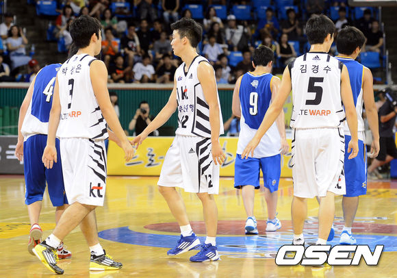 KT는 부상으로 데뷔시즌을 거의 뛰지 못한 임종일과 김현수를 선발로 투입했다. 이어 경험 많은 송영진과 오용준을 넣어 균형을 맞췄다. 센터는 민성주가 맡았다. 한양대출신 국가대표슈터 조성민은 선발에서 제외됐다. 대학최고의 공격력을 자랑하는 한양대는 슈터 오창환, 이재도, 유영진, 정효근 등 핵심전력을 모두 투입했다.