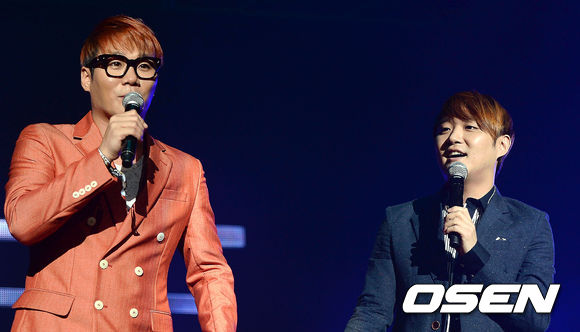 15일 오후 서울 방이동 올림픽공원 핸드볼경기장에서 열린 '슈퍼소닉 2013(SUPER SONIC 2013)' 소닉 스테이지에서 바이브 윤민수, 류재현이 인사말을 전하고 있다.