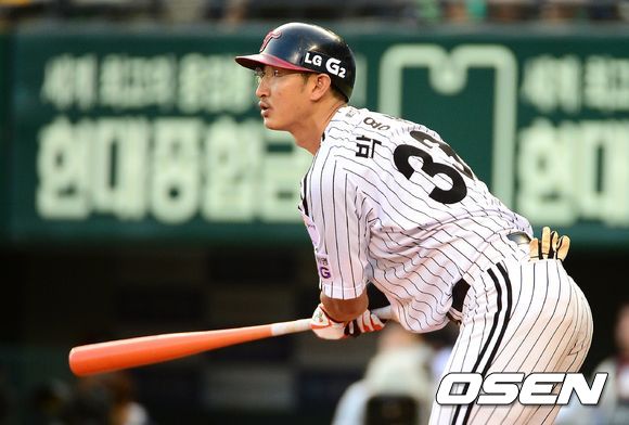 15일 오후 서울 잠실야구장에서 열린 '2013 한국야쿠르트 세븐 프로야구' LG 트윈스와 한화 이글스의 경기, 2회말 2사 2루에서 LG 박용택이 1타점 적시타를 날리고 타구를 바라보고 있다.