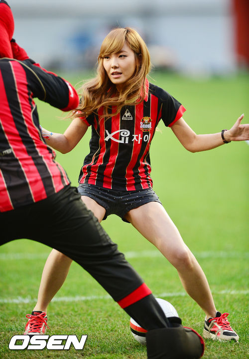15일 오후 서울월드컵경기장에서 열린 현대오일뱅크 K리그 클래식 2013 23라운드 FC 서울과 대전 시티즌 경기, 개그우먼 신보라가 시축을 하며 개그를 펼치고 있다.