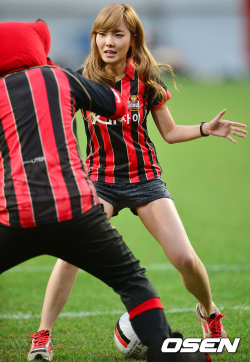 15일 오후 서울월드컵경기장에서 열린 현대오일뱅크 K리그 클래식 2013 23라운드 FC 서울과 대전 시티즌 경기, 개그우먼 신보라가 드리블을 하고 있다.