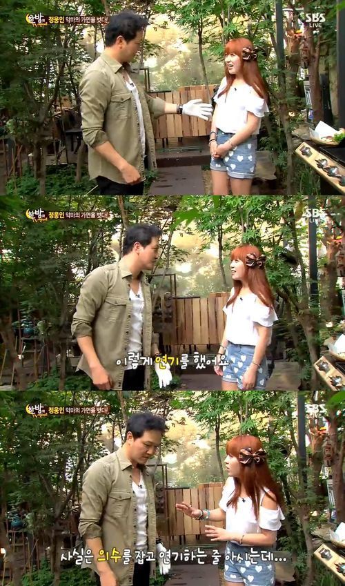 이날 정웅인은 목장갑을 끼고 등장해 "이런 식으로 손연기를 했다"고 비밀을 털어놨다. 이어 "의수가 아닌 실제 손으로 연기했다. 사람들이 의수를 움직여서 연기한 줄 아는데 손을 움직이지 않고 휴대전화를 열고 그랬다"고 덧붙였다.