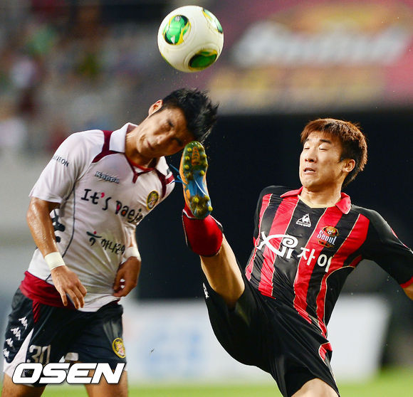 15일 오후 서울월드컵경기장에서 열린 현대오일뱅크 K리그 클래식 2013 23라운드 FC 서울과 대전 시티즌 경기, 전반 대전 김성수와 서울 고요한이 볼다툼을 하고 있다.
