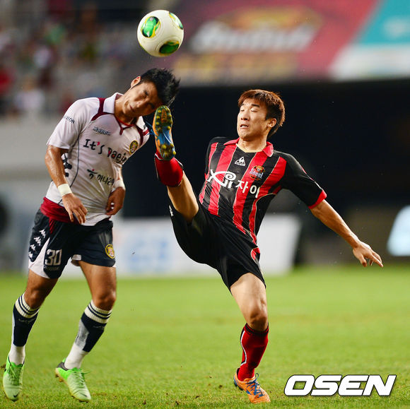 15일 오후 서울월드컵경기장에서 열린 현대오일뱅크 K리그 클래식 2013 23라운드 FC 서울과 대전 시티즌 경기, 전반 대전 김성수와 서울 고요한이 볼다툼을 하고 있다.