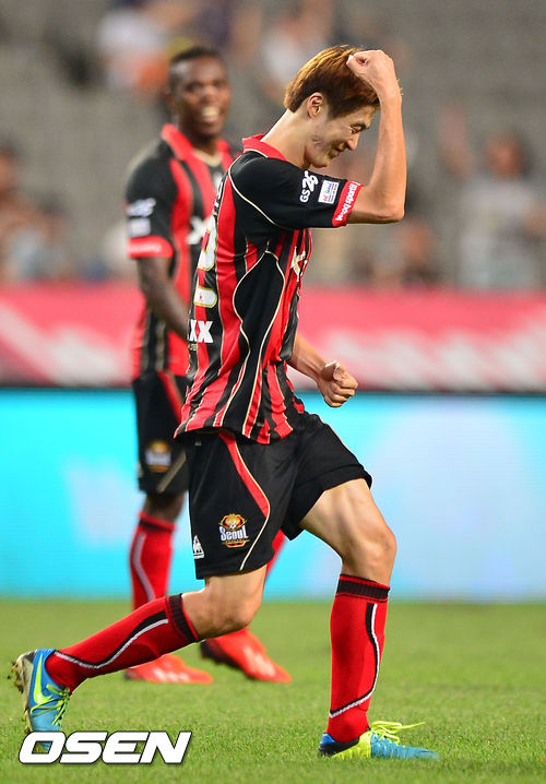 15일 오후 서울월드컵경기장에서 열린 현대오일뱅크 K리그 클래식 2013 23라운드 FC 서울과 대전 시티즌 경기, 후반 서울 고명진이 중거리슛을 골인시킨 후 어퍼컷 세레머니를 하고 있다.