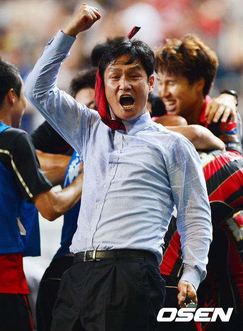 후반 추가시간에 결승골을 넣은 서울 고요한이 최용수 감독과 기쁨을 나눈 후 최용수 감독이 어퍼컷 세레모니를 하고 있다. / rumi@osen.co.kr