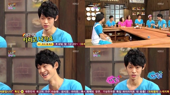 정준영은 15일 오후 방송된 KBS 2TV 예능프로그램 '해피투게더3' 꽃미남 야간매점 특집에 출연해 재치 있는 입담을 뽐냈다.