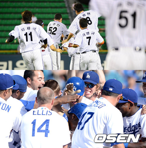 두 팀은 닮은 점이 많다. LG는 서울, 다저스는 로스앤젤레스라는 대도시를 연고로 하는 빅마켓 팀으로 전국 어디에서나 응원하는 팬들을 어렵지 않게 찾을 수 있는 인기팀이다. LG는 1994년, 다저스는 1988년을 끝으로 우승을 못하고 있다. 하지만 올해 두 팀은 약속이라도 한 듯 만화같은 대반전으로 미국과 한국 야구팬들을 열광에 빠뜨리고 있다.