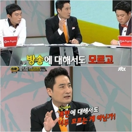 강용석은 15일 방송된 JTBC '썰전'에서 "'더테러 라이브'를 봤는데 이 영화의 감독과 작가는 방송에 대해 모르고 권력이나 관료제에 대해서도 너무 모른다고 생각했다. 심지어 폭탄에 대해서도 너무 모르는게 아닌가란 생각이 들더라"고 자신의 생각을 들려줬다.
