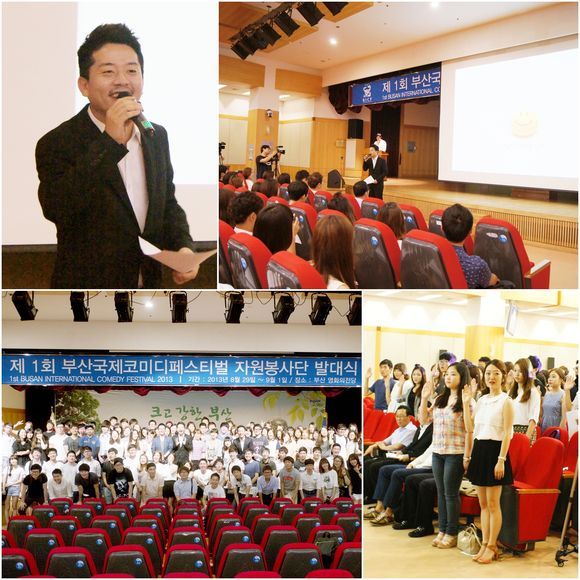 이에 앞서 16일 오전 부산시청 중강당에서 열린 자원봉사 발대식에는 부산국제코미디페스티벌 집행 위원장 개그맨 김준호를 비롯해 120명의 자원봉사자들이 참석해 결의를 다지는 등 뜻 깊은 시간을 가졌다.