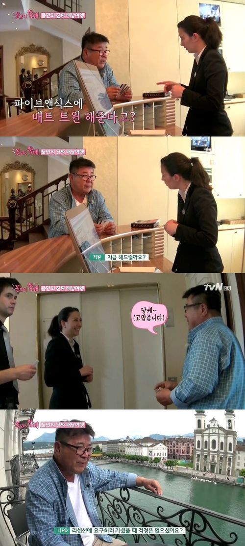 백일섭은 16일 오후 방송된 tvN 예능프로그램 '꽃보다할배'에서 호텔방을 바꾸기 위해 직접 로비로 내려가 "방을 바꿔 달라"며 호텔 직원과 대화를 나눴다.