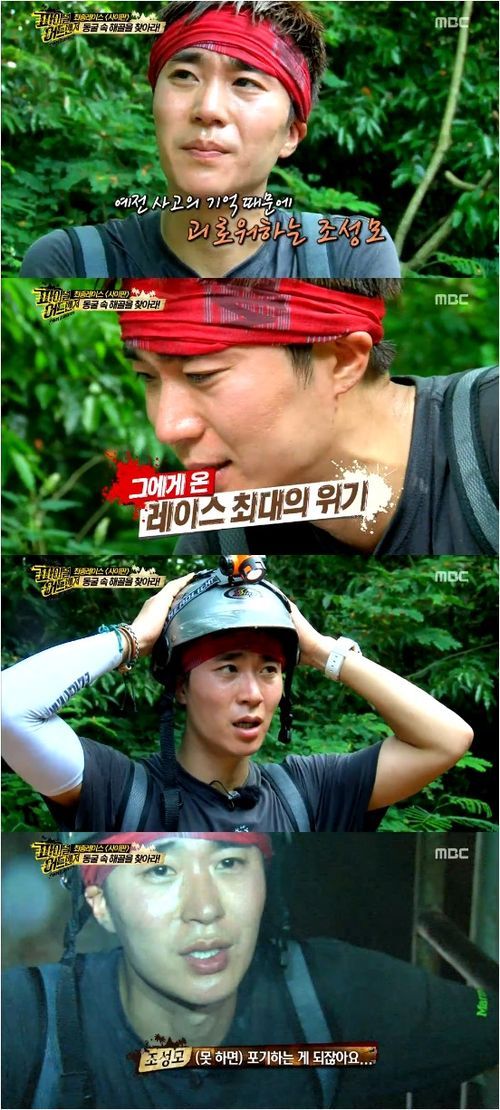 그는 동굴에서 나온 후 “이건 내 문제다. 사고를 당했던 경험 때문에 그렇다. 답답하다”고 힘들어했다. 조성모는 다시 동굴로 들어가 도전을 하려고 했지만 결국 트라우마를 극복하지 못하고 미션을 포기했다. 제작진은 그에게 15분 지연 출발을 선언했다.