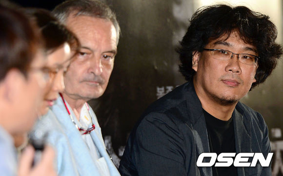 봉준호감독이'설국열차' 원작자 장 마르크 로셰트의 이야기를 듣고 있다.