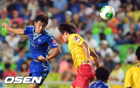 경기 전반 수원 조동건 이 헤딩볼을 따내고 있다.