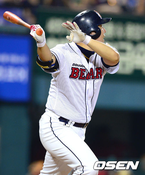 17일 오후 서울 잠실구장에서 열린 '2013 한국야쿠르트 세븐 프로야구' 두산 베어스와 SK 와이번스의 경기, 7회말 1사 2,3루 두산 김현수가 희생플라이 타구를 날리고 있다.