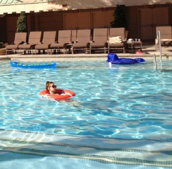 사진 속 태연은 힘든 일정에서 잠시 벗어난 망중한의 모습으로 선글라스를 낀 채 수영장 위에 둥둥 떠다니는 태연 물놀이의 진수를 선보이고 있다.