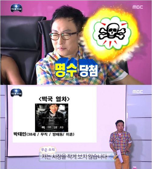 2인자 박명수의 깜찍한(?) ‘떡국열차’ 특집 제안은 MBC 주말 간판 예능프로 '무한도전'에서 이뤄졌다. 박명수는 17일 ‘무한도전’ 정규방송에서 시청자 박태민이라는 이름으로 떡국열차 특집을 하자고 떼를 썼으나 유재석 정준하 하하 노홍철 정형돈 등 멤버들의 코웃음만 당하는 설움을 맛봤다.