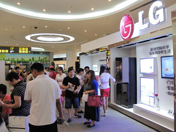 중국 베이징에서 개최된 LG전자 로드쇼에서 소비자들이 제품을 체험하고 있다.