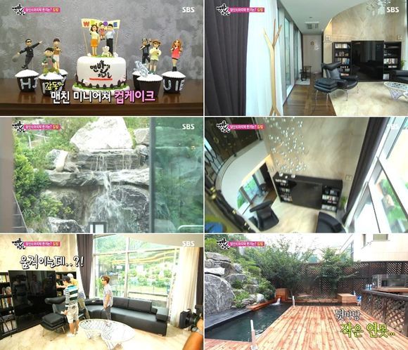 김나운은 18일 방송된 SBS 예능프로그램 '일요일이 좋다-맨발의 친구들'에서 정원에 폭포까지 있는 집을 공개했다. 대리석이 깔린 계단이 2층으로 연결됐으며, 거실에는 이동식 텔레비전이 있어 멤버들의 시선을 사로잡았다.