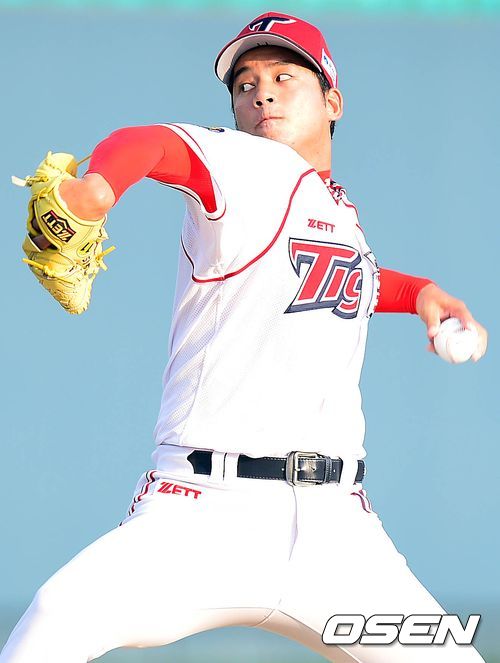 1회초 KIA 선발 임준섭이 힘차게 공을 뿌리고 있다.