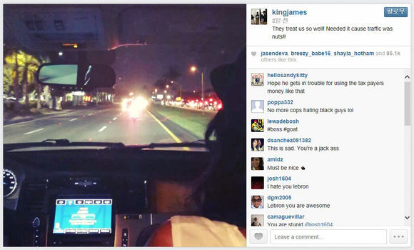 제임스는 “경찰들이 우리를 너무 잘 대해줬다. 교통체증이 너무 심해서 필요한 조치였다”며 만족했다. 하지만 미국현지에서 특혜논란이 거세다. 일반인이었다면 반대편 차선에 진입하는 순간 교통법규를 어겼으므로 범칙금을 물게 된다. 제임스가 유명인이기에 필요 이상의 서비스를 받았다는 것. 경찰이 어떤 법규를 근거로 호위를 했는지는 아직 확인되지 않고 있다.