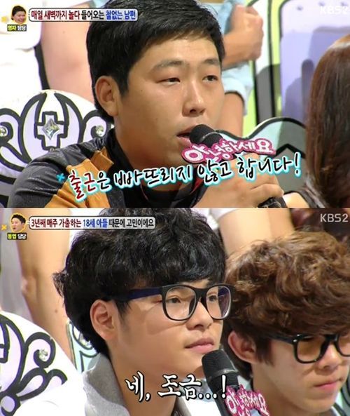 19일 방송된 KBS 2TV 예능 프로그램 '대국민 토크쇼 안녕하세요'(이하 '안녕하세요')에는 철없는 남편 때문에 외로운 아내와 3년째 매주 가출하는 아들 때문에 고민인 엄마가 등장했다.