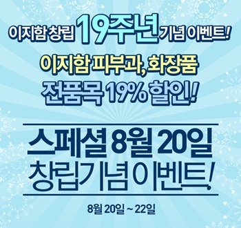 이지함피부과와 이지함화장품은 20일 “‘이지함(LJH)’ 브랜드 론칭 19주년을 기념해 8월 대대적인 ‘감사이벤트’를 연다”고 밝혔다.