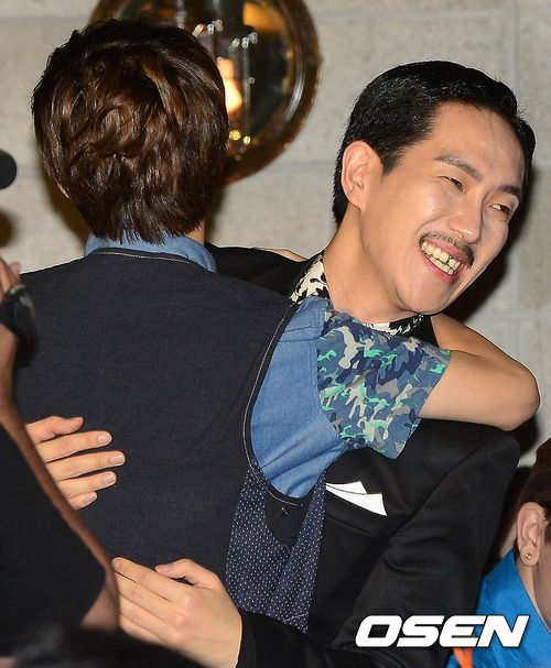허니지 권태현이 유승우와 쇼케이스를 마치고 포옹을 하고 있다.