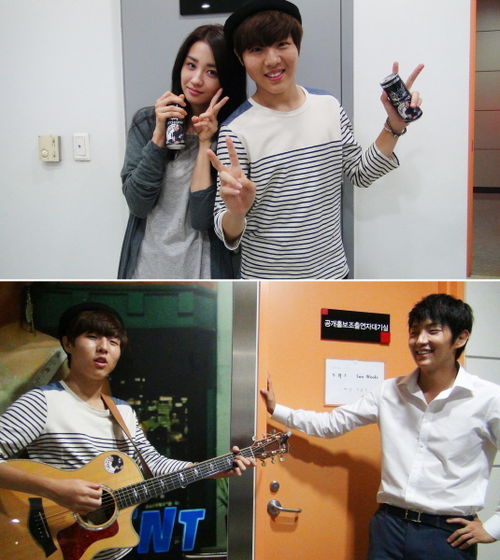 사진 속 유승우는 함께 머리를 맞대로 서서 손가락으로 '브이'자를 그린 채 다정한 모습을 보이고 있다. 이어진 또 다른 사진에서는 이준기의 앞에서 기타를 들고 노래를 부르며 깜찍함을 과시한다. 특히 유승우의 모습을 흐뭇하게 바라보는 이준기의 표정이 화기애애한 분위기를 전달한다.