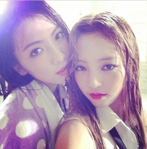 공개된 사진에서 구하라와 강지영은 얼굴을 맞대고 매혹적인 표정으로 카메라를 바라보고 있다. 특히 구하라와 강지영 모두 젖은 머리카락에 짙은 화장을 하고 있어 궁금증을 자아낸다.