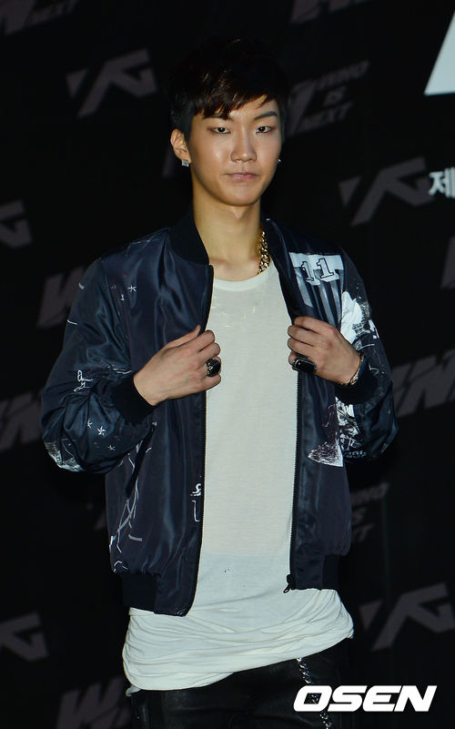 20일 오후 서울시 영등포구 여의도동 콘래드 서울 호텔 그랜드 볼룸에서 열린 YG 신인남자그룹 데뷔 서바이벌 프로그램 'WIN : WHO IS NEXT' 제작발표회에서 팀 A의 이승훈이 포토타임 전 자켓을 고쳐입고 있다.