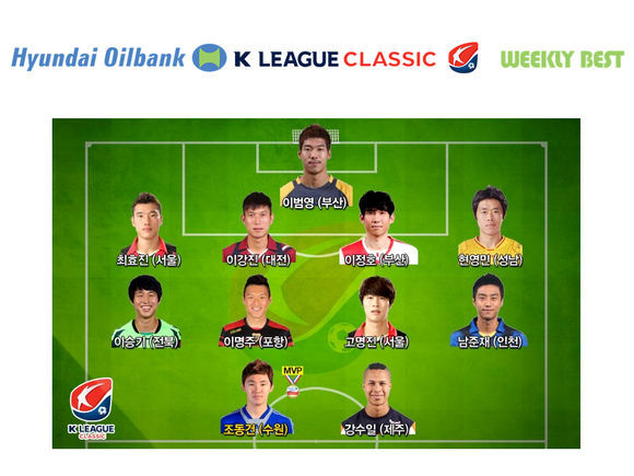 대구전에서 골을 넣은 강수일(제주)은 조동건과 함께 베스트 11 공격수를 이루었고, 미드필더에는 이승기(전북)와 남준재(인천), 고명진(서울), 이명주(포항)가 뽑혔다. 수비라인은 현영민(성남)과 이정호(부산), 이강진(대전), 최효진(서울)으로 구성됐고, 골키퍼는 라이벌 김승규(울산) 앞에서 선방쇼를 펼친 이범영(부산)이 선정됐다.