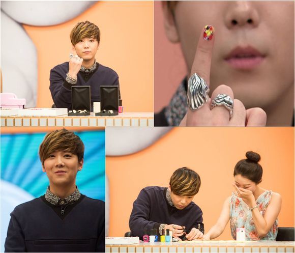 최근 '이홍기 네일북'을 발간하는 등 맨즈네일을 알리는데 주도적인 역할을 하고 있는 이홍기는 이날 셀프 젤네일 비법을 공개해 눈길을 끌었다. 그는 이쑤시개로 간단하지만 아티스틱한 마블링 네일을 완성시켜 큰 박수를 받았다.