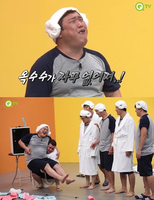 김준현은 최근 진행된 QTV 현대인의 멘붕 백서 '어럽쇼!'의 녹화에 게스트로 출연, 사우나를 콘셉트로 한 다양한 상황극을 함께 했다.