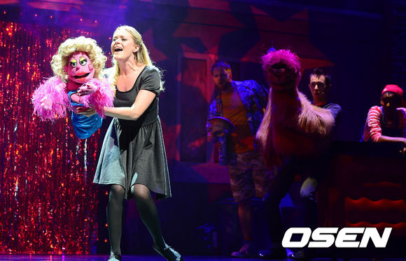 21일 오전 서울 잠실동 샤롯데씨어터에서 열린 뮤지컬 '애비뉴Q' 미디어콜에서 배우들이 멋진 무대를 선보이고 있다.
