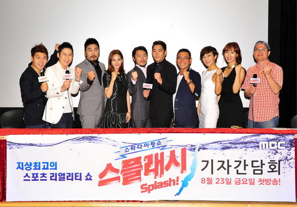 ‘스플래시’는 높은 다이빙대 위에서 자신의 한계를 극복하는 유명인의 모습을 통해 시청자들에게 짜릿한 스릴과 감동을 전달하는 리얼리티 프로그램. 신동엽과 전현무가 MC로 호흡을 맞추며, 배우 홍여진, 이훈, 임호, 조은숙, 최수린, 양동근, 김영호, 오승현, 박재민, 클라라, 가수 아이비, 슈퍼주니어 강인, 샤이니 민호, 씨스타 소유, NS윤지, B1A4 공찬, EX-O 타오, M.I.B 오직, 레이디스 코드 권리세, 개그맨 이봉원, 샘 해밍턴, 방송인 홍석천, 김새롬, UFC 챔피언 김동현, 전 체조선수 여홍철 등 25명의 출연자가 다이빙에 도전한다. 첫 방송은 23일 오후 9시 30분.