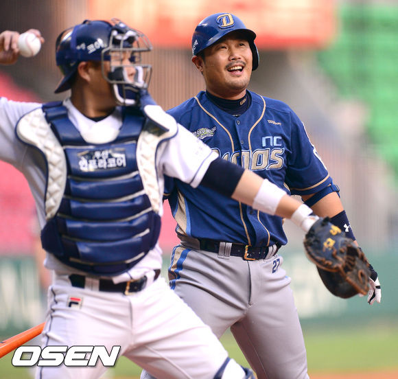21일 오후 서울 잠실구장에서 열린 '201 한국야쿠르트 세븐 프로야구' 두산 베어스와 NC 다이노스의 경기 1회초 2사 3루 NC 이호준이 스탠딩 삼진아웃 당한뒤 아쉬워하고 있다