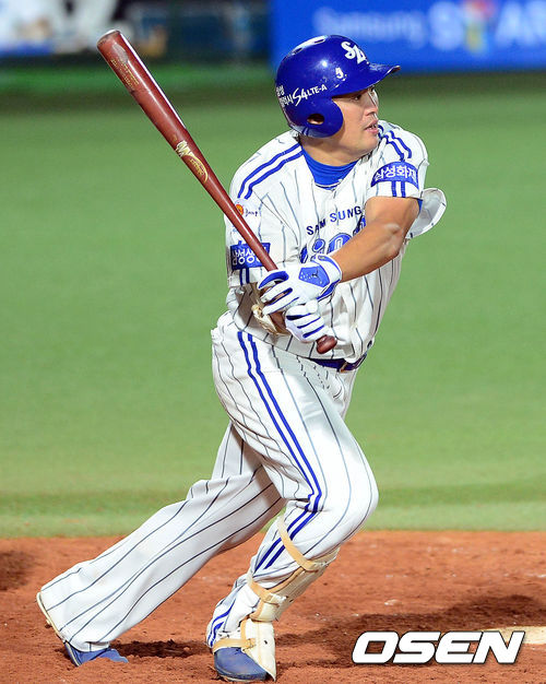 21일 오후 대구구장에서 열린 '2013 한국야쿠르트 세븐 프로야구' 삼성 라이온즈와 SK 와이번스의 경기 5회말 2사 1,3루 박한이가 1타점 적시타를 치고 있다.